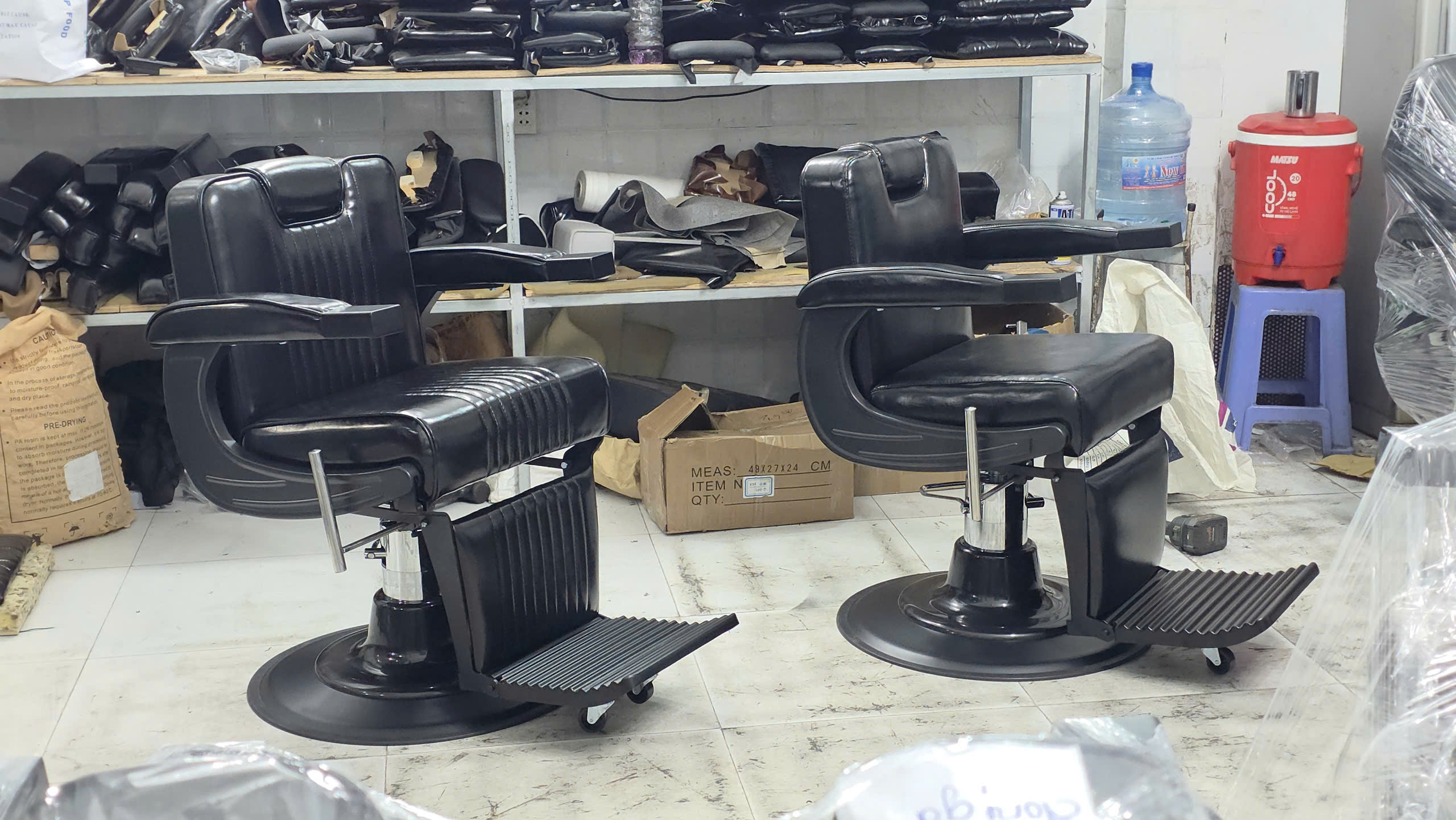 Thiết kế tối giản, hiện đại: Các mẫu ghế này thường có kiểu dáng gọn gàng, phù hợp với không gian tiệm nhỏ hoặc vừa, giúp tối ưu diện tích di chuyển cho thợ.